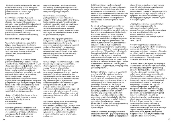 Wielu z nich jest świadkami nadużyć, za które lekarze nie ponoszą odpowiedzialności, chronieni przez hierarchiczną strukturę władzy. Ponieważ zgłaszanie lub kwestionowanie takich działań jest postrzegane jako zakłócanie pracy i przejaw braku profesjonalizmu, studenci bardzo szybko uczą się konformizmu. W rezultacie w sytuacjach budzących sprzeciw moralny czują się „pozbawieni głosu”, a jako bierni świadkowie poczynań przełożonych stają się ich współwinowajcami. Budzi to w nich poczucie bezsilności i „uwięzienia
