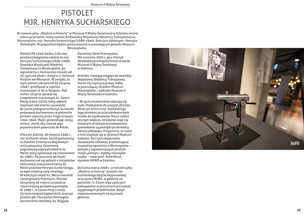 Do końca marca 2026 r. w ramach cyklu „Wejście w historię” pistolet mjr. Sucharskiego będzie eksponowany