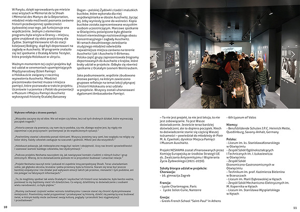 i Mémorial des Martyrs de la Déportation, młodzież miała możliwość poznania zarówno historii przedwojennej społeczności żydowskiej oraz tego, jak funkcjonuje ona współcześnie. Jednym z elementów programu była wizyta w Drancy – miejscu, gdzie znajdował się obóz przejściowy dla Żydów. Stamtąd kierowano ich do stacji kolejowej Bobigny, skąd byli deportowani na zagładę w Auschwitz. W programie znalazło się też spotkanie z Ocalałą Arlette Testyler, która przeżyła Holokaust w ukryciu.