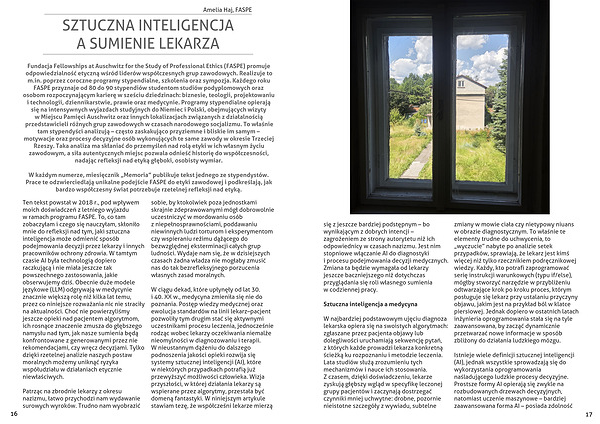 W każdym numerze, miesięcznik „Memoria” publikuje tekst jednego ze stypendystów. Prace te odzwierciedlają unikalne podejście FASPE do etyki zawodowej i podkreślają, jak bardzo współczesny świat potrzebuje rzetelnej refleksji nad etyką.