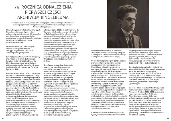 18 września 1946 roku, w ruinach dawnego getta warszawskiego, odnaleziono pierwszą część Podziemnego Archiwum Getta Warszawy, znanego dziś jako Archiwum Ringelbluma.