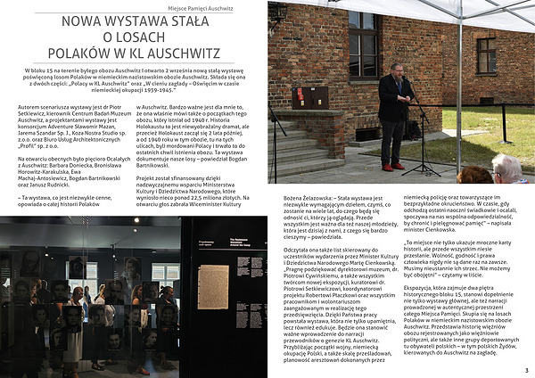 Odczytała ona także list skierowany do uczestników wydarzenia przez Minister Kultury i Dziedzictwa Narodowego Martę Cienkowską. „Pragnę podziękować dyrektorowi muzeum, dr. Piotrowi Cywińskiemu, a także wszystkim twórcom nowej ekspozycji, kuratorowi dr. Piotrowi Setkiewiczowi, koordynatorowi projektu Robertowi Płaczkowi oraz wszystkim pracownikom i wolontariuszom zaangażowanym w realizację tego przedsięwzięcia. Dzięki Państwa pracy powstała wystawa, która nie tylko upamiętnia, lecz również edukuje. Będzie ona stanowić ważne wprowadzenie do narracji przewodników o genezie KL Auschwitz. Przybliżając początki wojny, niemiecką okupację Polski, a także skalę prześladowań, planowość aresztowań dokonanych przez niemiecką policję oraz towarzyszące im bezprzykładne okrucieństwo. W czasie, gdy odchodzą ostatni naoczni świadkowie i ocalali, spoczywa na nas wspólna odpowiedzialność, by chronić i pielęgnować pamięć” – napisała minister Cienkowska.