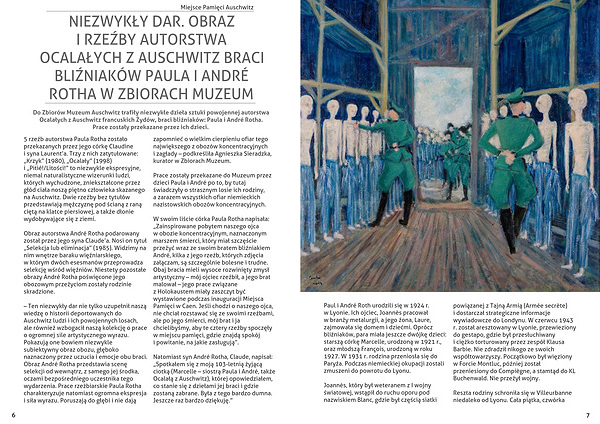 Do Zbiorów Muzeum Auschwitz trafiły niezwykłe dzieła sztuki powojennej autorstwa Ocalałych z Auschwitz francuskich Żydów, braci bliźniaków: Paula i André Rotha. Prace zostały przekazane przez ich dzieci.
