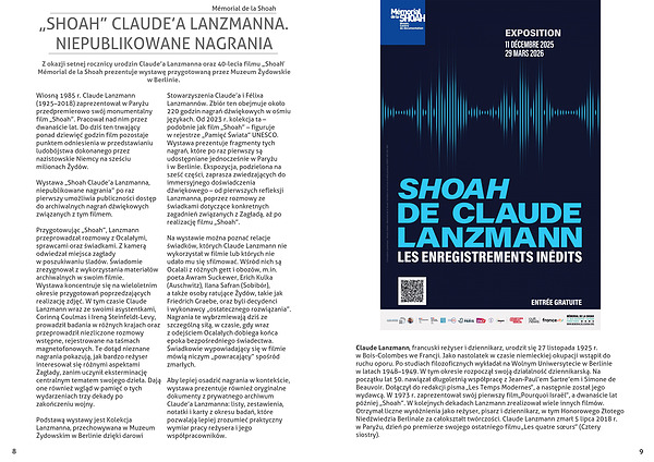 i w Berlinie. Ekspozycja, podzielona na sześć części, zaprasza zwiedzających do immersyjnego doświadczenia dźwiękowego – od pierwszych refleksji Lanzmanna, poprzez rozmowy ze świadkami dotyczące konkretnych zagadnień związanych z Zagładą, aż po realizację filmu „Shoah”.