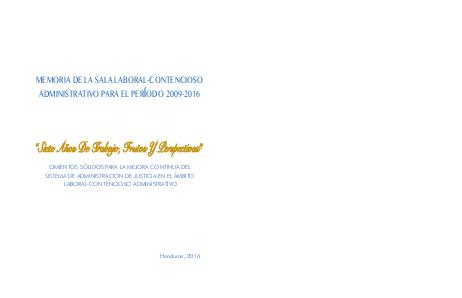 “SIETE AÑOS DE TRABAJO, FRUTOS Y PERSPECTIVAS” 2 Memoria de la Sala Laboral-Contencioso Administrativo para el Período 2009-2016