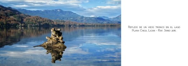 Reflejo de un viejo tronco en el lago Playa Chica, Lican - Ray. Junio 2015.