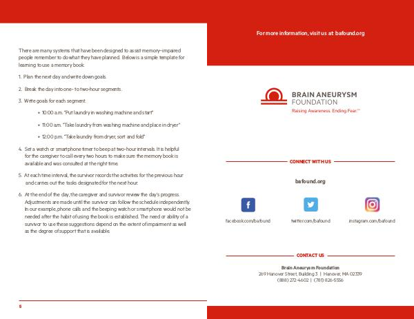 6. At the end of the day, the caregiver and survivor review the day’ s progress. Adjustments are made until the survivor can follow the schedule independently. In our example, phone calls and the beeping watch or smartphone would not be needed after the habit of using the book is established. The need or ability of a survivor to use these suggestions depend on the extent of impairment as well as the degree of support that is available.