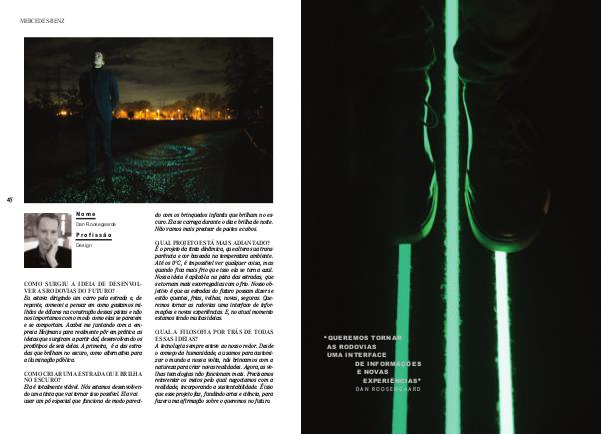 protótipos de seis delas. A primeira, é a das estradas que brilham no escuro, como alternativa para