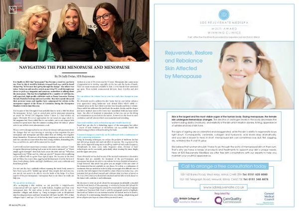 We believe that women shouldn ’ t have to go through the worry of menopausal skin on their own . That ’ s why we have a range of products and treatments to support your skin ’ s unique needs . Here at SDS Rejuvenate MediSpa we offer free skin consultations with our experts to help you maintain your youthful appearance .