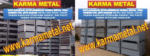 KATLANABİLİR İSTİFLENEBİLİR HURDA METAL VİDA SOMUN PUL ÇİVİ KASASI METAL SAC KASA / ÇELİK TAŞIMA KASALARI STOKLAMA KASASI / SAC PALET TAŞIMA İSTİFLEME KASALARI