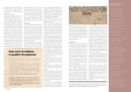 città più io e i miei amici si chiese il permesso di andare a Gerusalemme e Betlemme ce lo dettero si andò col pulma, a Gerusalemme si andò dai frati Italiani e loro ci fecero visitare tutte le vie crucis di Gesù dove era nato a Betlemme l’orto degli ulivi il tribunale dove fu giustiziato e il calvario dove finì messo in croce e poi la tomba dove è sepolto, son cose bellissime da vedere. Capitolo VII Finalmente i sei mesi bene o male passarono verso il venti di dicembre una mattina arrivò dei cami ci fecero salire e ci portarono alla stazione di Gaza e li si salì su una tradotta e ci dov evano portare al campo 180 che era come si sapeva il campo di rimpatrio, fu una notte un po’ triste arrivati vicino a un campo di concentramento era buio, si scese dalla tradotta si camminò più o meno un chilometro e due, si arrivò al campo di concentramento invece di esser il 180 era il 390 ci dettero delle tende e li si pernottò fù una nottata tremenda qui non si rimpatria più. La mattina sveglia presto ci riinquadronno a piedi si ripartì, si fece circa otto 10 chilometri camminando era deserto iniziato il cammino in pieno deserto ci si avvicinava a un’ altro campo di concentramento con la speranza fosse il 180, effettivamente era il 180, la contentezza fu tanta lì si passò il natale del 46, e il primo dell’anno 1947 giorni e notti che non passavano mai finalmente la mattina del sei gennaio arrivò dei