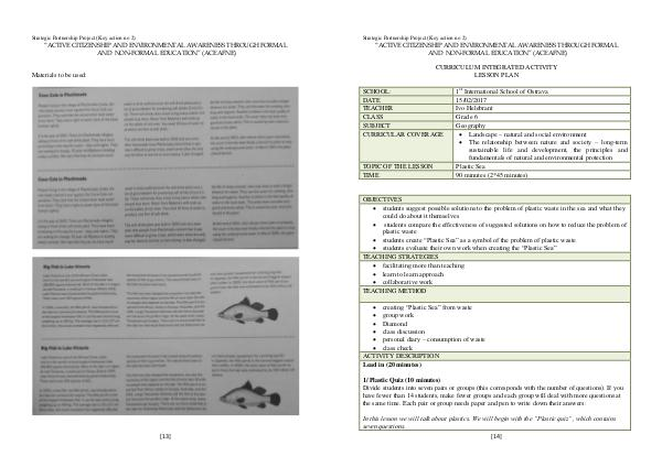 “ACTIVE CITIZENSHIP AND ENVIRONMENTAL AWARENESS THROUGH FORMAL