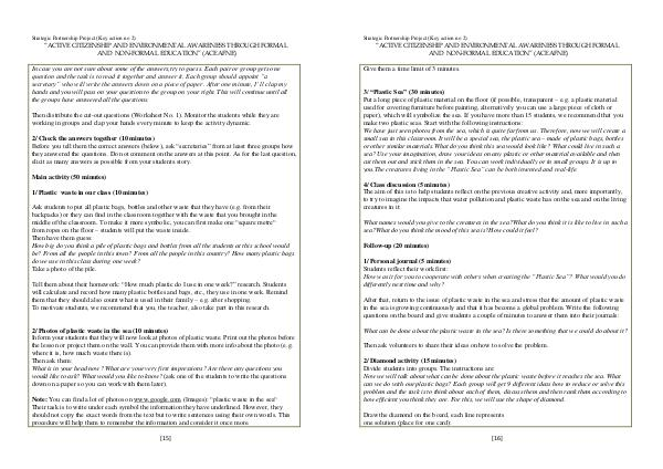 small sea in this classroom. It will be a special sea, the plastic sea – made of plastic bags, bottles