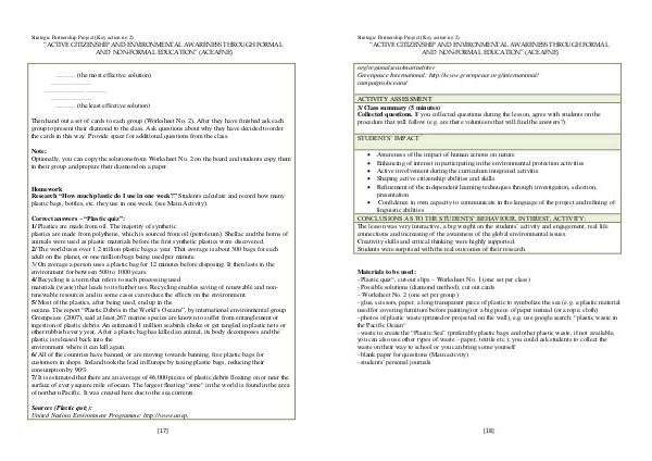 you can also use other types of waste – paper, textile etc.); you could ask students to collect the