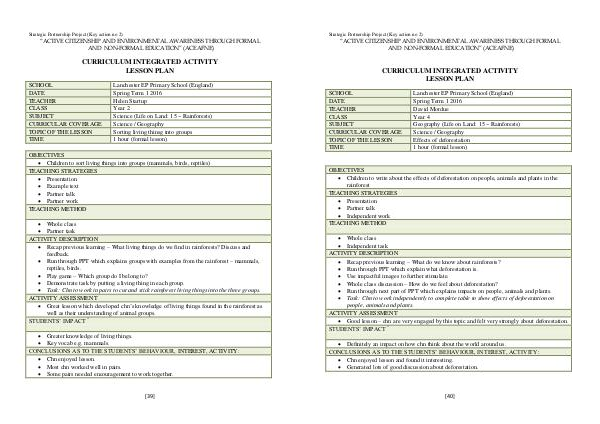 Great lesson which developed chn‟s knowledge of living things found in the rainforest as