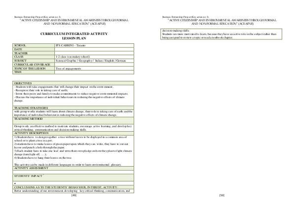 CURRICULUM INTEGRATED ACTIVITY