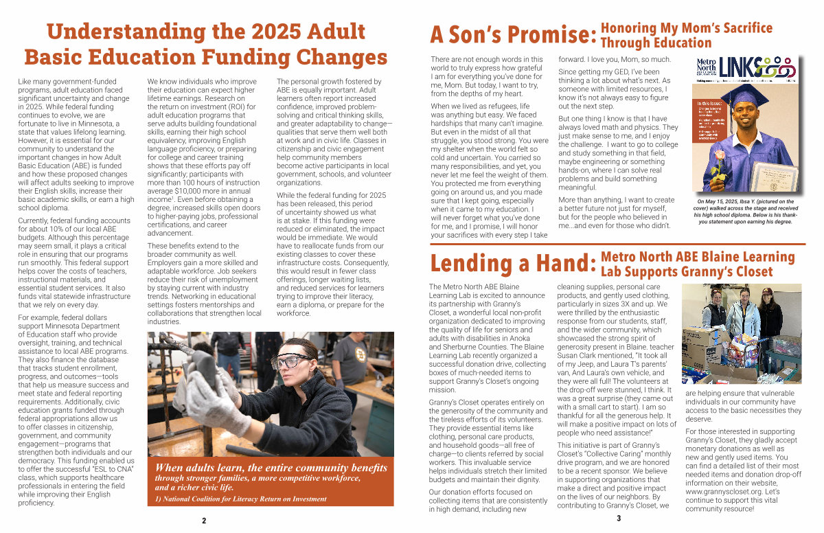On May 15, 2025, Ibsa Y.( pictured on the cover) walked across the stage and received his high school diploma. Below is his thankyou statement upon earning his degree.