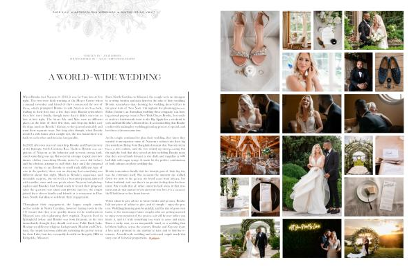 When asked to give advice to future brides and grooms , Brooke had one piece of advice to give , and it ’ s simple – enjoy the process . Wedding planning goes by quickly , and the day of goes even faster , so she encourages future couples who are getting married to enjoy every moment of the process as it will be over before you know it , and it ’ s truly something you want to savor and enjoy . From a rocky start , to an inseparable bond , to a wedding that led them halfway across the country , Brooke and Nayeem share a love and a promise to one another to have and to hold forevermore . A world-wide wedding and a devoted couple made this story one of fairytale proportions . Xxoxo
