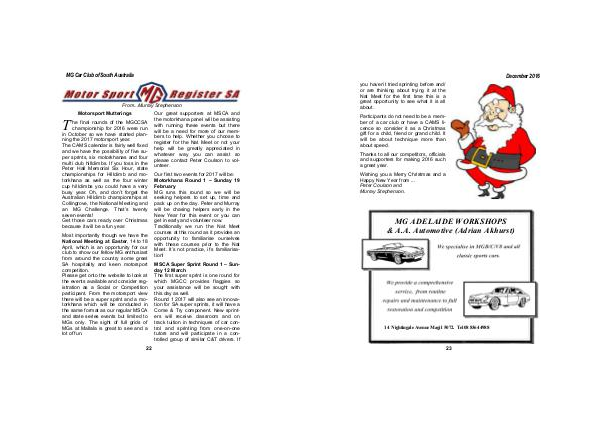 MG ADELAIDE WORKSHOPS