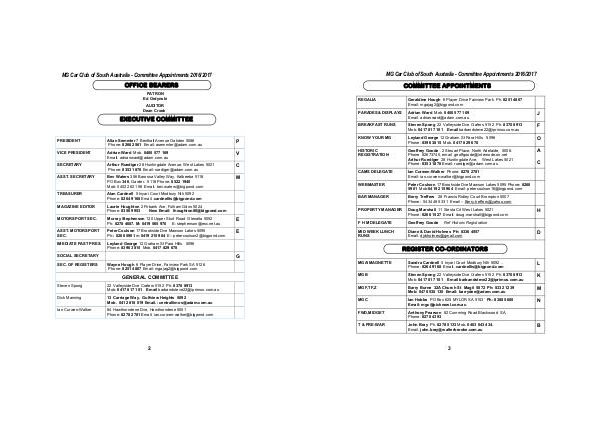 MG Car Club of South Australia- Committee Appointments 2016 / 2017 COMMITTEE APPOINTMENTS