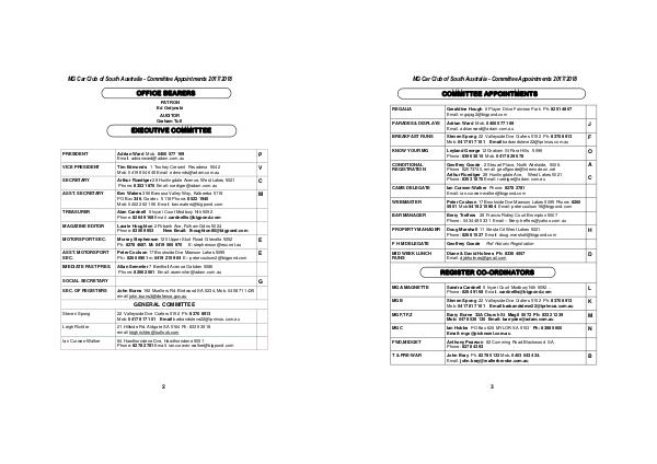 MG Car Club of South Australia - Committee Appointments 2017/2018