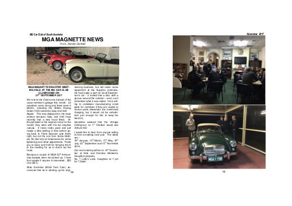 ING HELD AT THE MG CAR CLUB