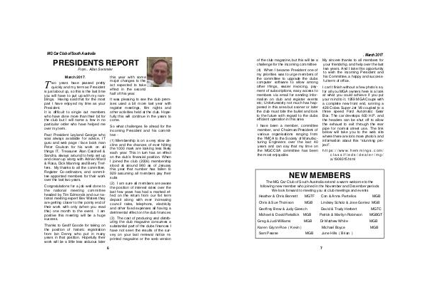 wo years have passed pretty quickly and my term as President is just about up, so this is the last time you will have to put up with my ramblings. Having said that for the most part I have enjoyed my time as your President. It is difficult to single out members who have done more than their bit for the club but I will name a few in no particular order who have helped me over my term.