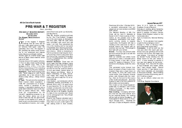 PRE-WAR & T REGISTER REPORT. December 2016 at Eden Hills The Biggest, Beaut, Bonza & Bonsai