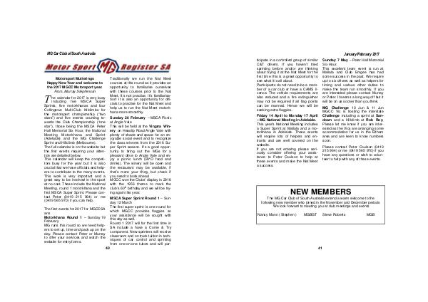 Motorsport Mutterings Happy New Year and welcome to the 2017 MGCC Motorsport year. From.. Murray Stephenson