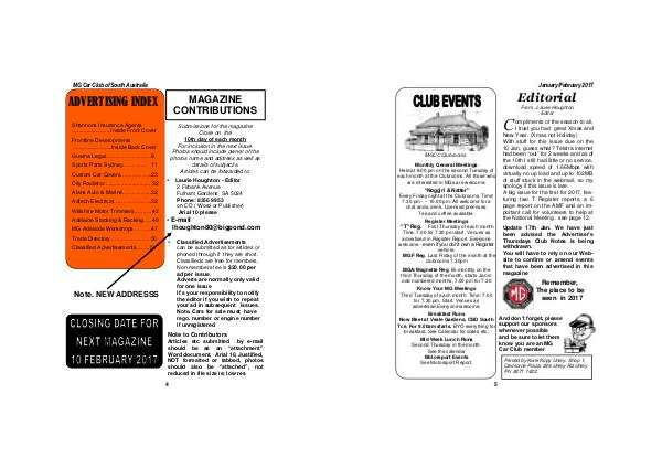 C I trust you had great Xmas and New Year.( Xmas not Holiday) With stuff for this issue due on the 10 Jan, guess what? Telstra internet had been“ out” for 2 weeks and as of the 10th I still had little or no service, download speed of 1.66Mbps with virtually no up load and up to 102MB of stuff stuck in the webmail, so my apology if this issue is late. A big issue for the first for 2017, featuring two T Register reports, a 6 page report on the AMF and an important call for volunteers to help at the National Meeting. see page 12.