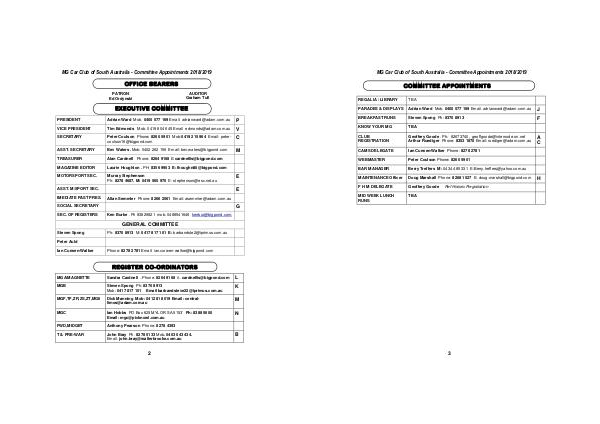 MG Car Club of South Australia - Committee Appointments 2018/2019