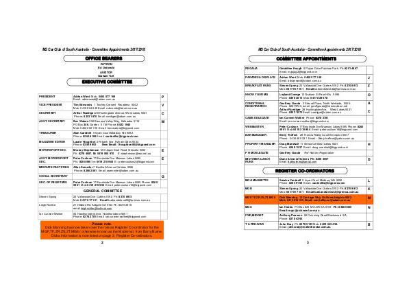 MG Car Club of South Australia - Committee Appointments 2017/2018