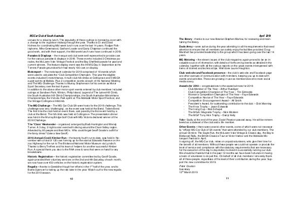 and The MG Challenge. Thanks to Murray Stephenson for his service as Motor