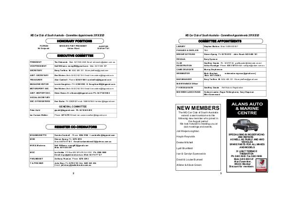 MG Car Club of South Australia - Committee Appointments 2019/2020