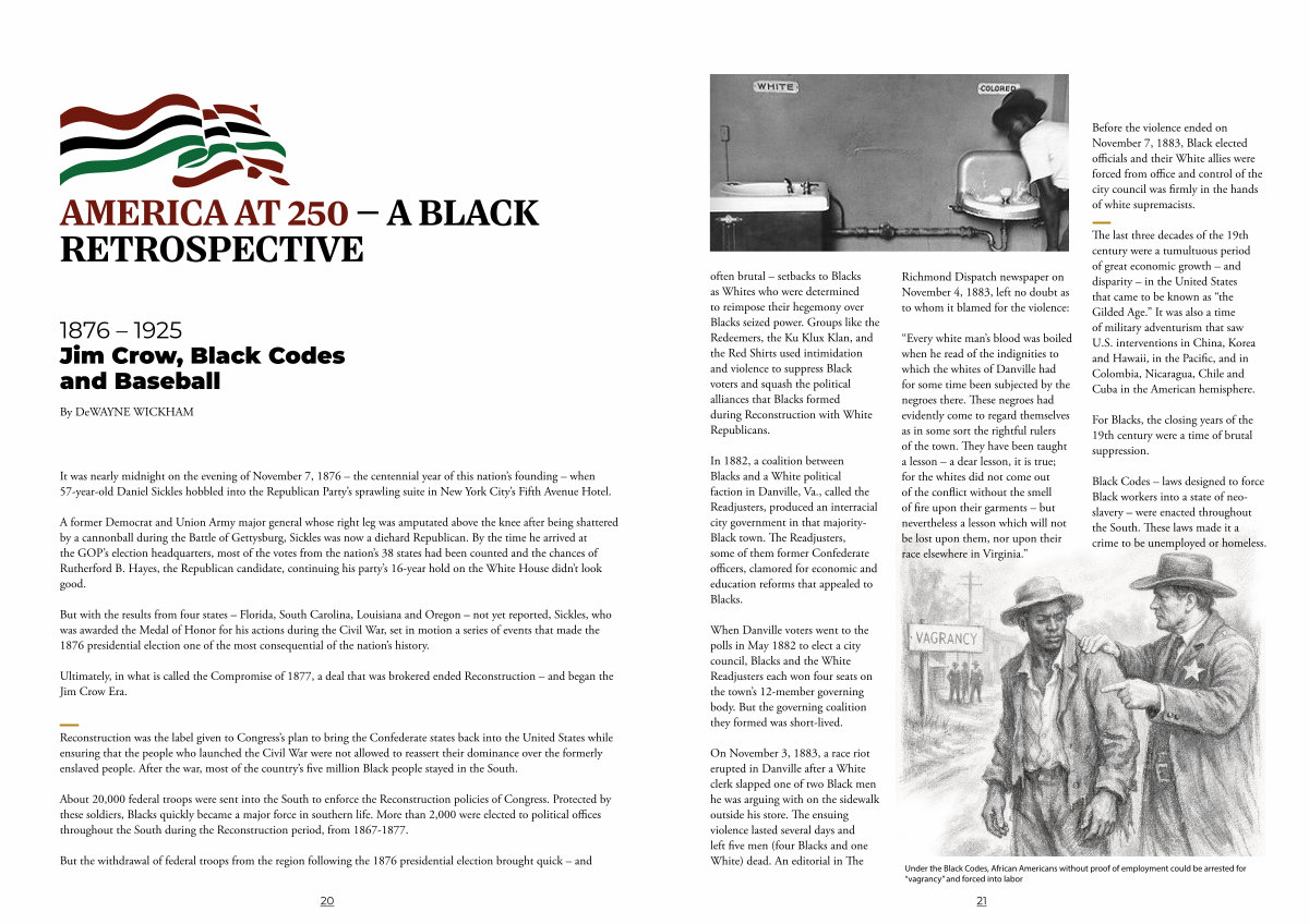 1876 – 1925 Jim Crow, Black Codes and Baseball