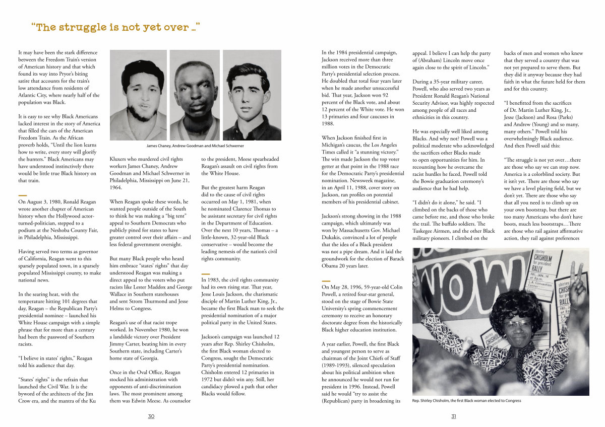 Jackson’ s strong showing in the 1988 campaign, which ultimately was won by Massachusetts Gov. Michael Dukakis, convinced a lot of people that the idea of a Black president was not a pipe dream. And it laid the groundwork for the election of Barack Obama 20 years later. appeal. I believe I can help the party of( Abraham) Lincoln move once again close to the spirit of Lincoln.”