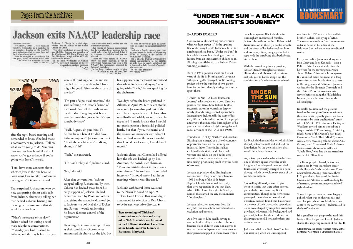 Jackson’ s withdrawal letter was read to the NAACP board on April 9, 1993 – Good Friday. That same day, it announced it’ s selection of Ben Chavis to be its next executive director. ■