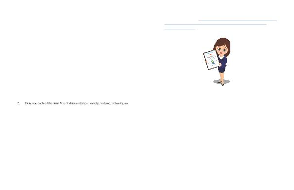 Describe each of the four V’s of data analytics: variety, volume, velocity, and