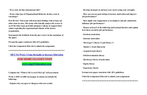 MGT 312 Week 3 Using Strengths to Increase Motivation