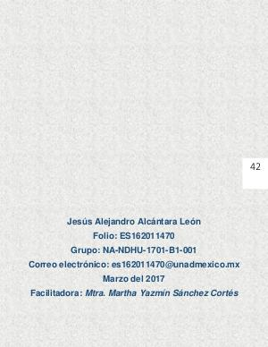 Jesús Alejandro Alcántara León Folio: ES162011470 Grupo: NA-NDHU-1701-B1-001 Correo electrónico: es162011470 @ unadmexico. mx Marzo del 2017 Facilitadora: Mtra. Martha Yazmín Sánchez Cortés