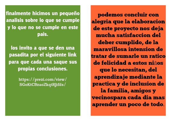 finalmente hicimos un pequeño analisis sobre lo que se cumple y lo que no se cumple en este pais.