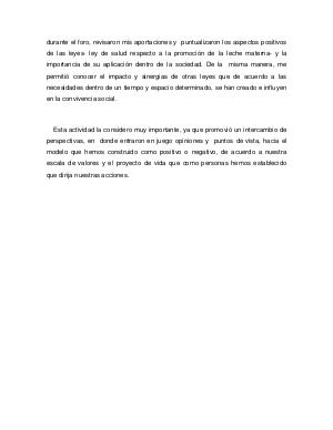 durante el foro, revisaron mis aportaciones y puntualizaron los aspectos positivos de las leyes- ley de salud respecto a la promoción de la leche materna- y la importancia de su aplicación dentro de la sociedad. De la misma manera, me permitió conocer el impacto y sinergias de otras leyes que de acuerdo a las necesidades dentro de un tiempo y espacio determinado, se han creado e influyen en la convivencia social.