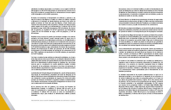 toneladas de carga, 1 millón 386 mil pasajeros y 550 mil vehículos. En el tercer