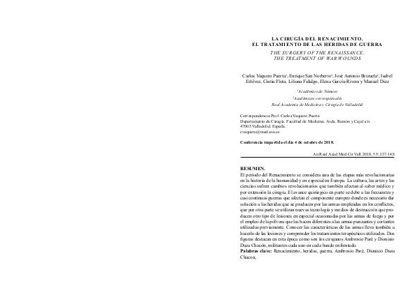 Palabras clave: Renacimiento, heridas, guerra, Ambrosio Paré, Dionisio Daza