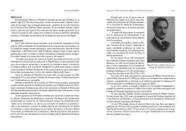ble, el Profesor Don Hipólito Duran Sacristán. Él se consideró siempre valliso-