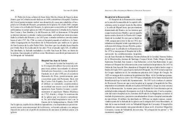 refuerza al Hospital de la Resurrección como institución hospitalaria. En 1615 la