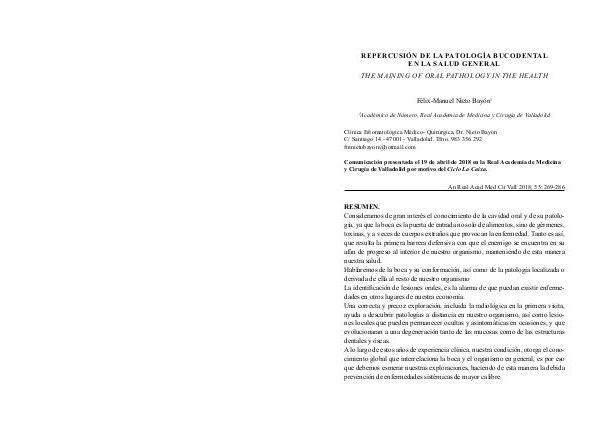 Comunicación presentada el 19 de abril de 2018 en la Real Academia de Medicina