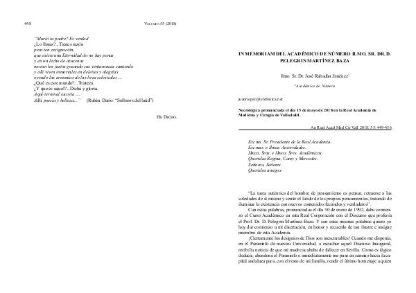 IN MEMORIAM DEL ACADÉMICO DE NÚMERO ILMO. SR. DR. D.