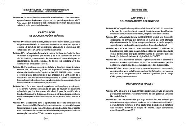 Articulo 26°.- En caso de fallecimiento del afiliado/afiliada a la CAEE SINESSS