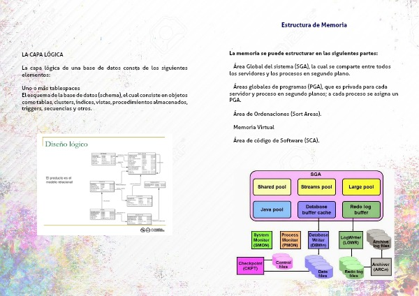 Áreas globales de programas (PGA), que es privada para cada servidor y proceso en segundo planos; a cada proceso se asigna un PGA.